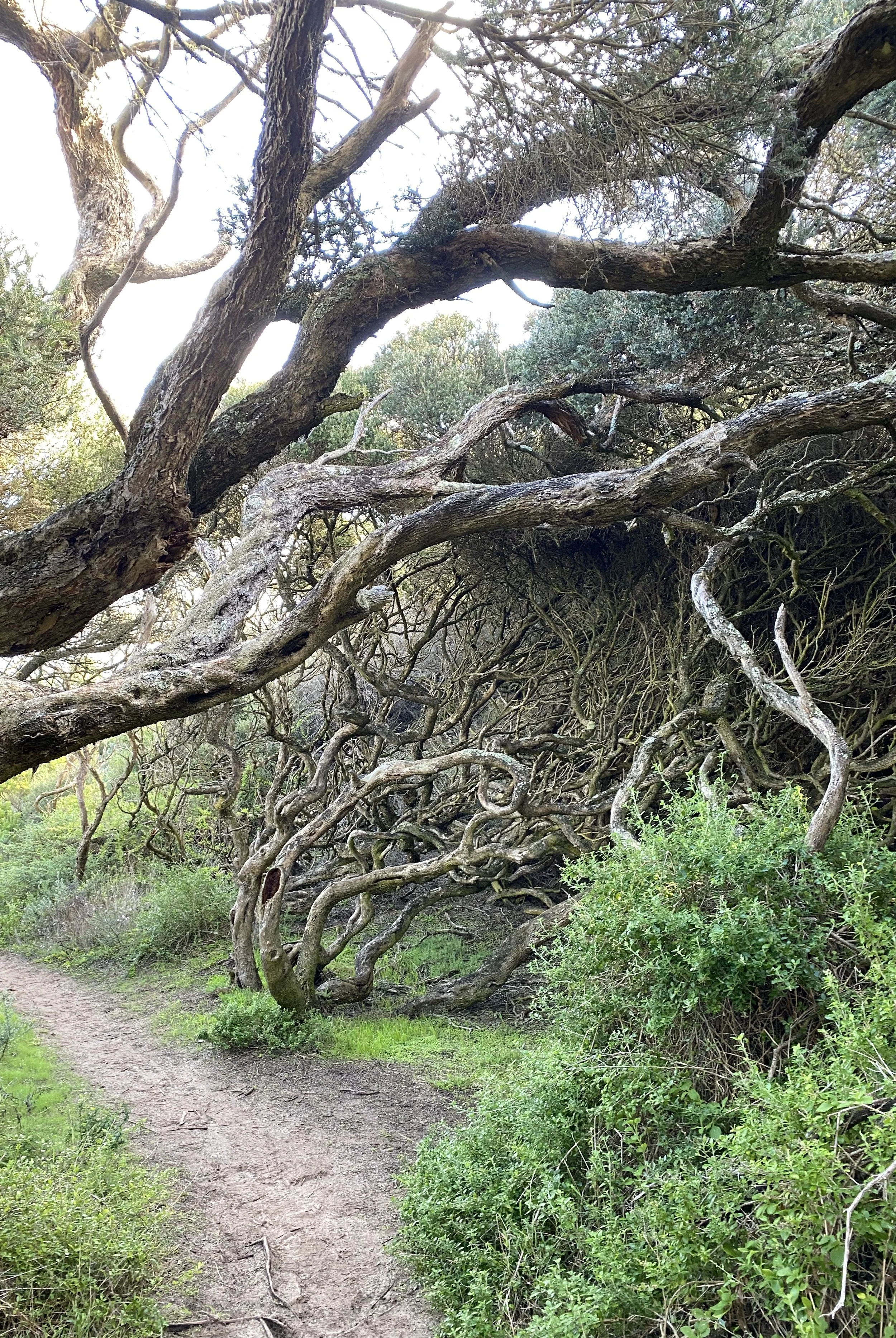 This recent work took some of its inspiration from regular hikes I’ve enjoyed in the stunning Mornington Peninsula National Park, adjacent to Cape Schanck and Gunnamatta Beach. It’s a frequent haunt of mine as the sea and its shores are a constant source of pleasure to me. Thereupon the twisted and bent tree trunks of the local native vegetation, a ‘Moonah’ landscape, shaped by strong southerly winds that come barrelling across Bass Strait throughout the year.